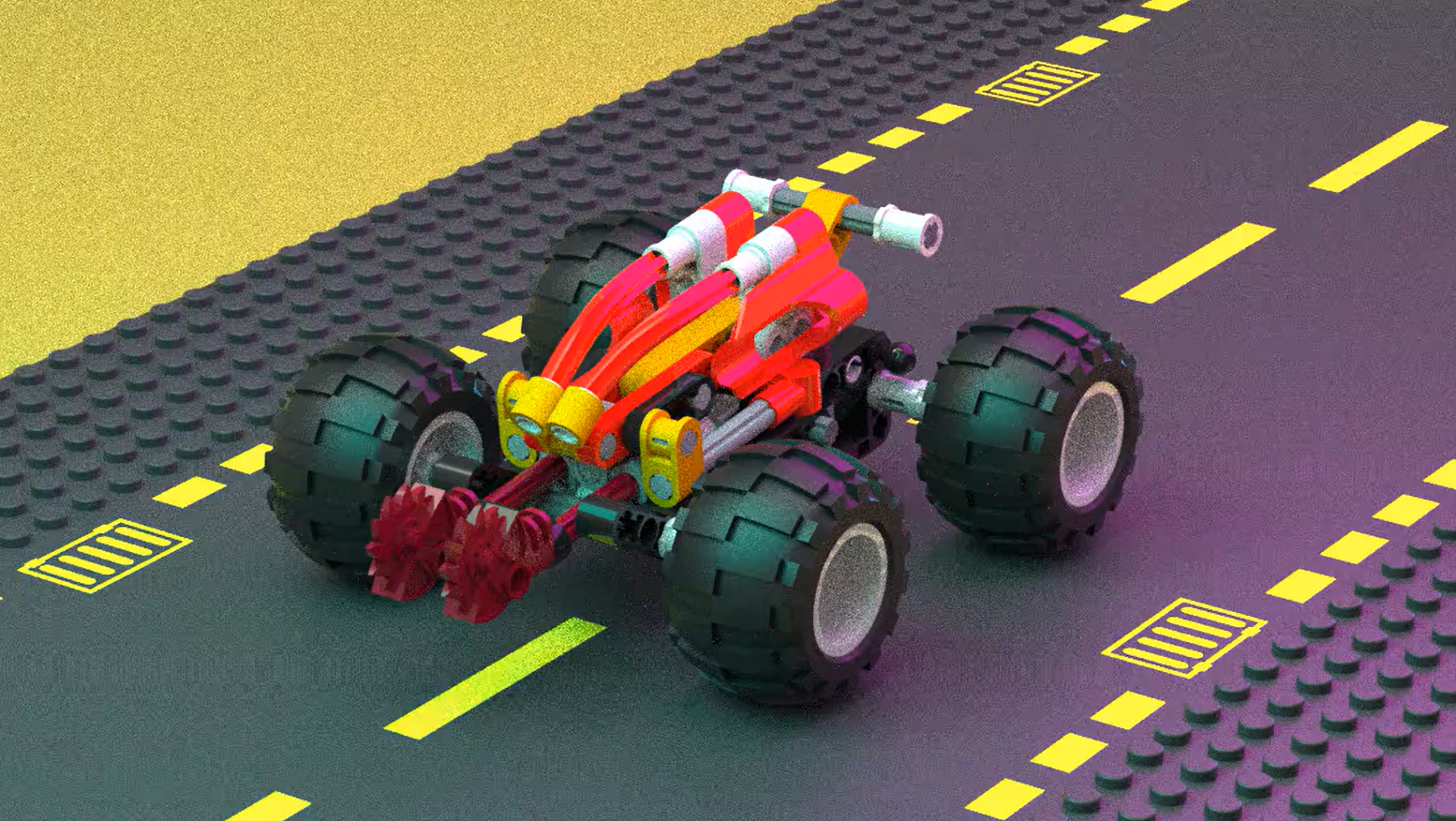 An example of a higher fidelity model, with tracks that a car can be locked onto and follow